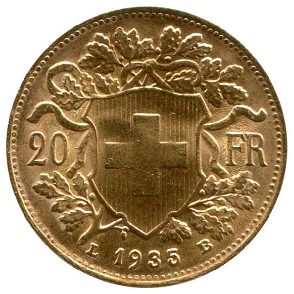 1935 L | 20 Franken | 20 Franken | Vreneli | 20.008.813 |